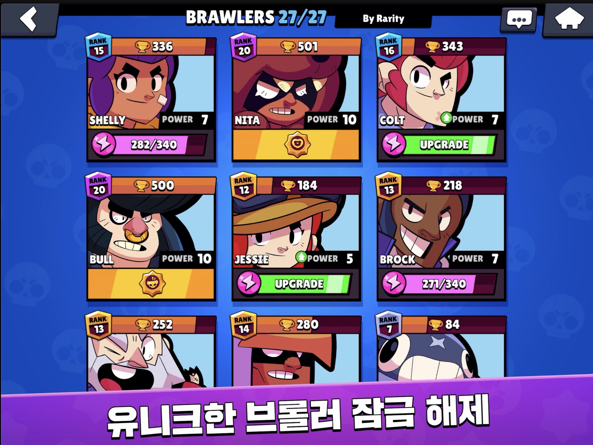 브롤스타즈 캐릭터 옷 카드 게임 공략 랭킹 맵